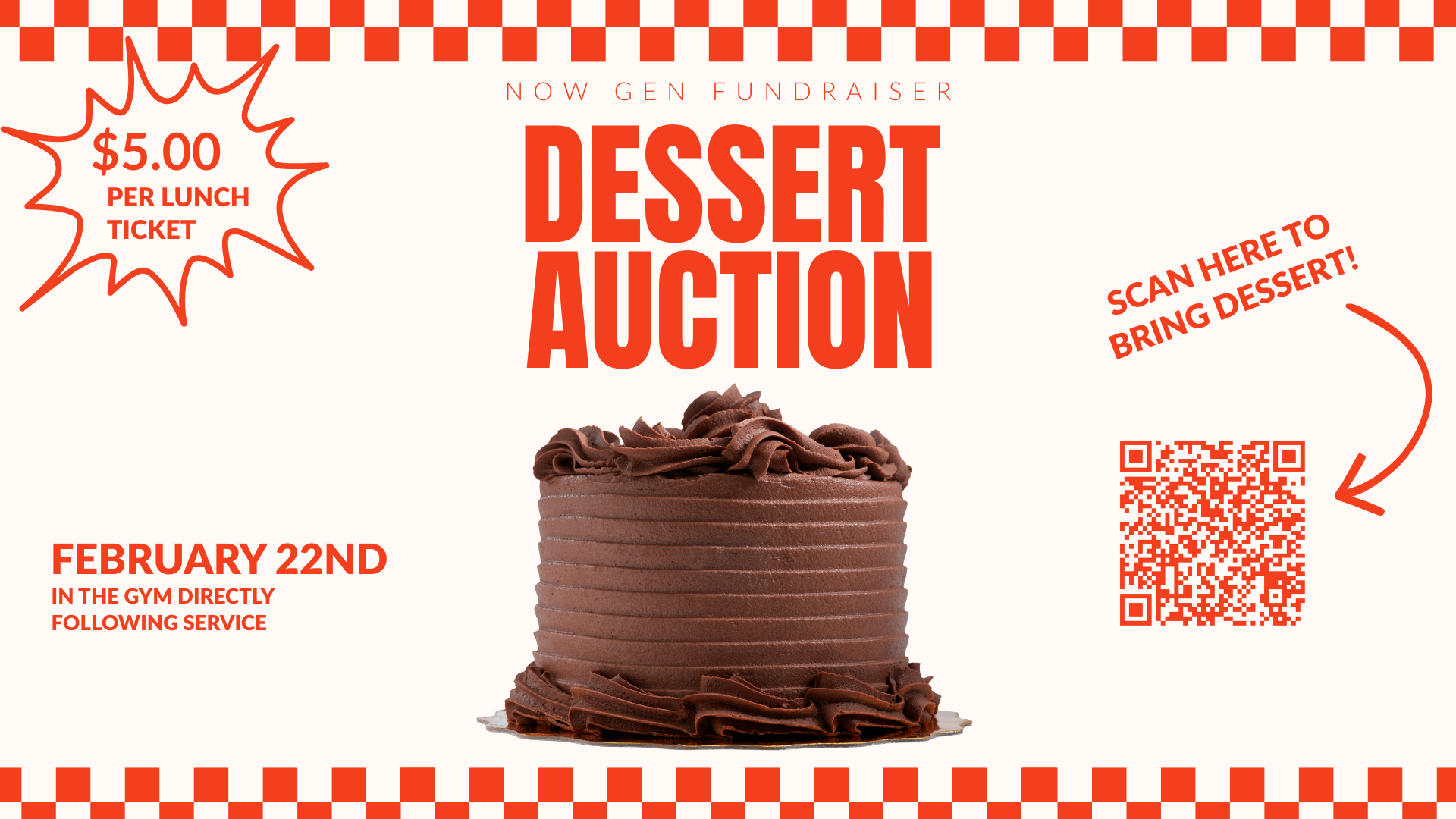 JOin us for our annual dessert auction to raise money for our kid's ministry